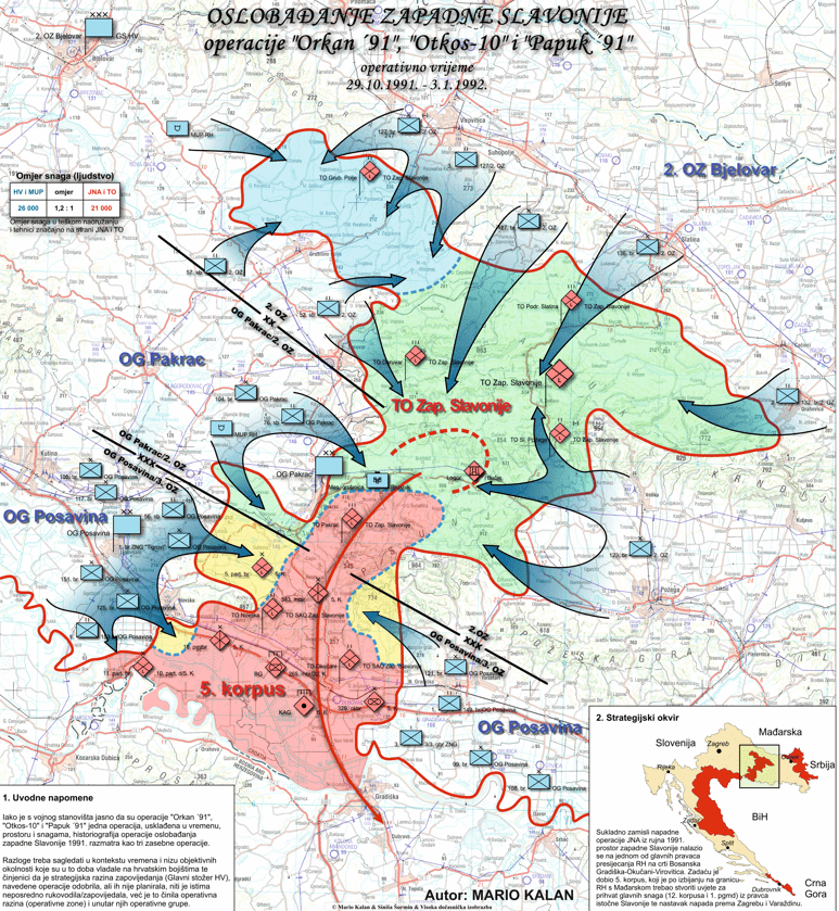 U jesen 1991. godine, situacija na Zapadnoslavonskom bojištu počinje se mijenjati u korist hrvatskih snaga. Kroz operacije “Orkan 91”, “Otkos 10” i “Papuk 91”, Hrvatska vojska (HV) ostvaruje značajne uspjehe, oslobađajući velike dijelove okupiranog teritorija. Krajem studenog 1991., 123. brigada HV Požega i 136. brigada HV P. Slatina prelaze iz I. Zbornog područja Osijek u II. Zborno područje Bjelovar s ciljem zajedničkog bojnog djelovanja na prostorima slavonskih planina.